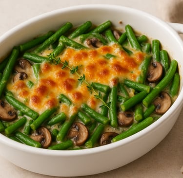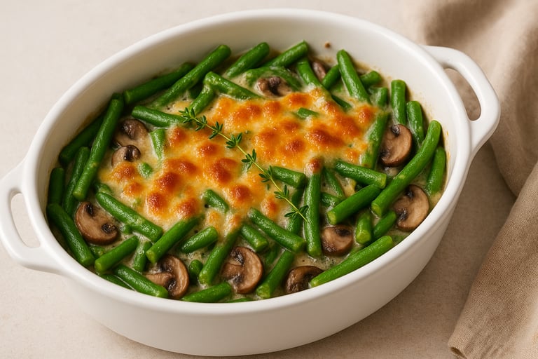 This keto twist on the classic green bean casserole skips the canned soup and fried onions, replacing them with fresh ingredients and real cream flavor.