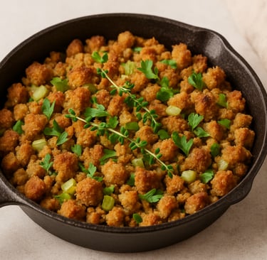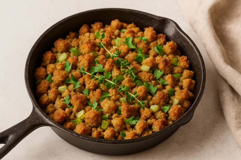 Stuffing doesn’t have to be off-limits on keto! This flavorful version uses cauliflower, almond flour bread cubes, and savory herbs to create that same cozy, satisfying taste.